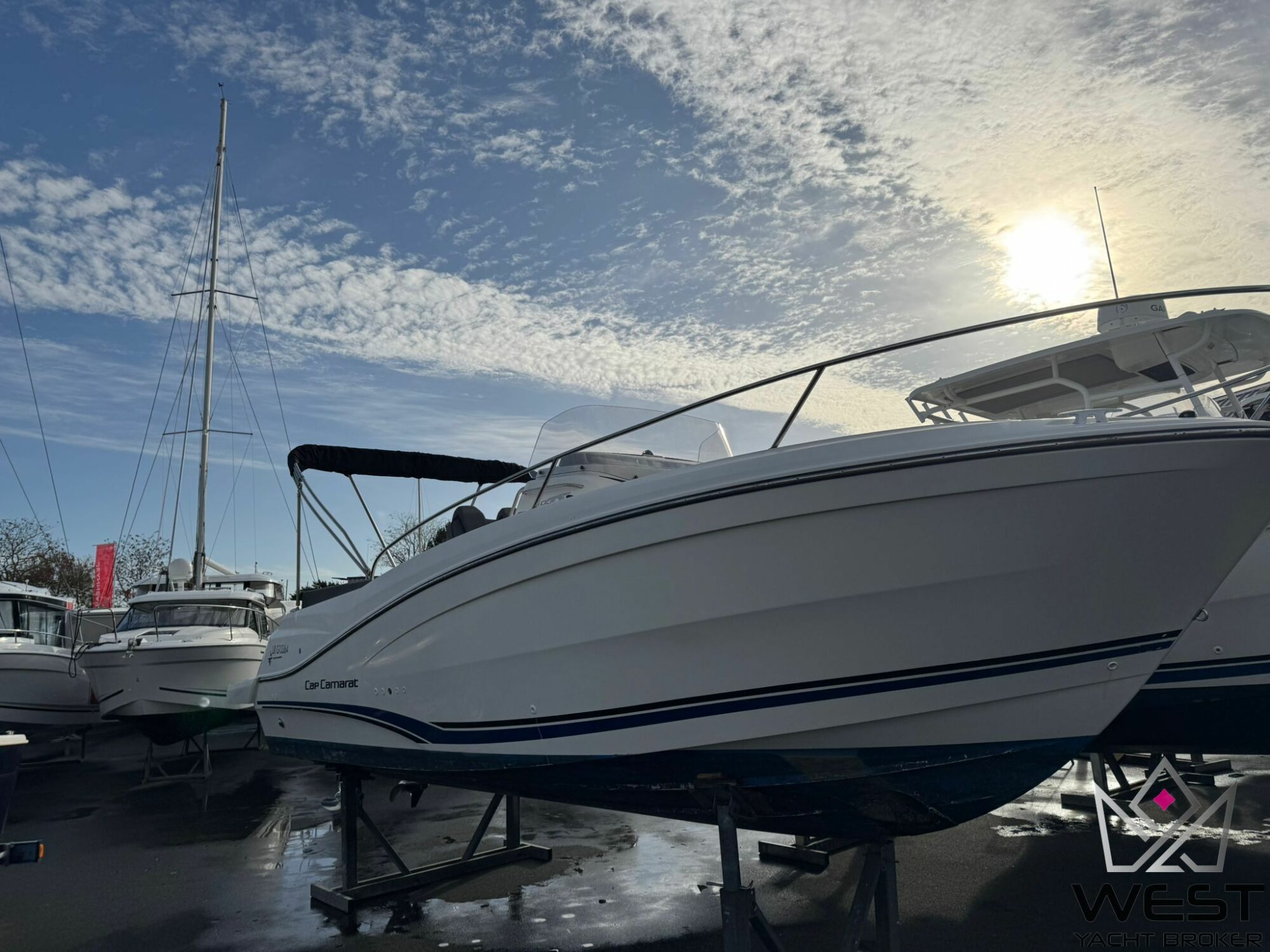 Ce Jeanneau Cap Camarat 9.0 CC de 2020 représente une valeur sûre. Il est motorisé par un ensemble puissant et économique de deux Suzuki DF200 APX. Leurs compteurs affichent un très faible usage : 146 heures de navigation. Cette unité est parfaitement entretenue et offre l’espace et les capacités d’un bateau neuf pour toutes vos activités en mer, de la vitesse à la détente. C’est un bateau hautement performant disponible pour un départ immédiat.