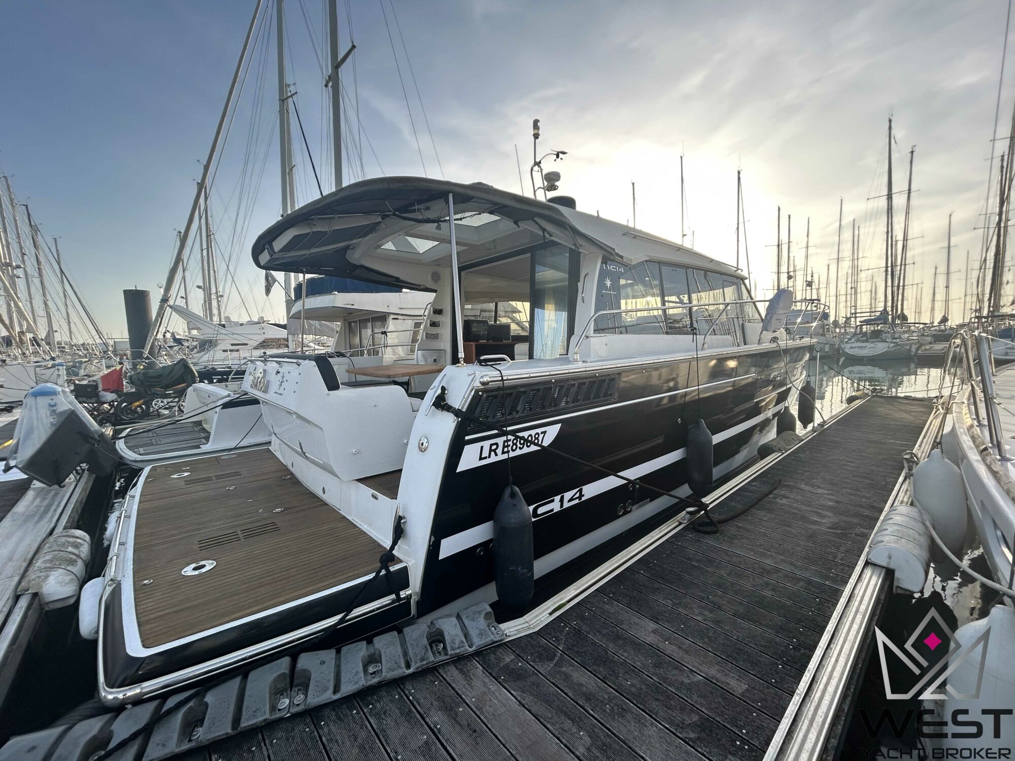 Vous rêvez d’un week-end en mer tout confort ? Ce Jeanneau NC 14 de 2013, parfaitement entretenu, est fait pour vous. Son élégant covering noir met en valeur ses lignes épurées, tandis que son planchet en teck lui confère une touche d’authenticité. Profitez d’un espace de vie intérieur spacieux et lumineux, idéal pour des moments de détente en famille ou entre amis. Une motorisation puissante vous garantit des sorties en mer des plus agréables.